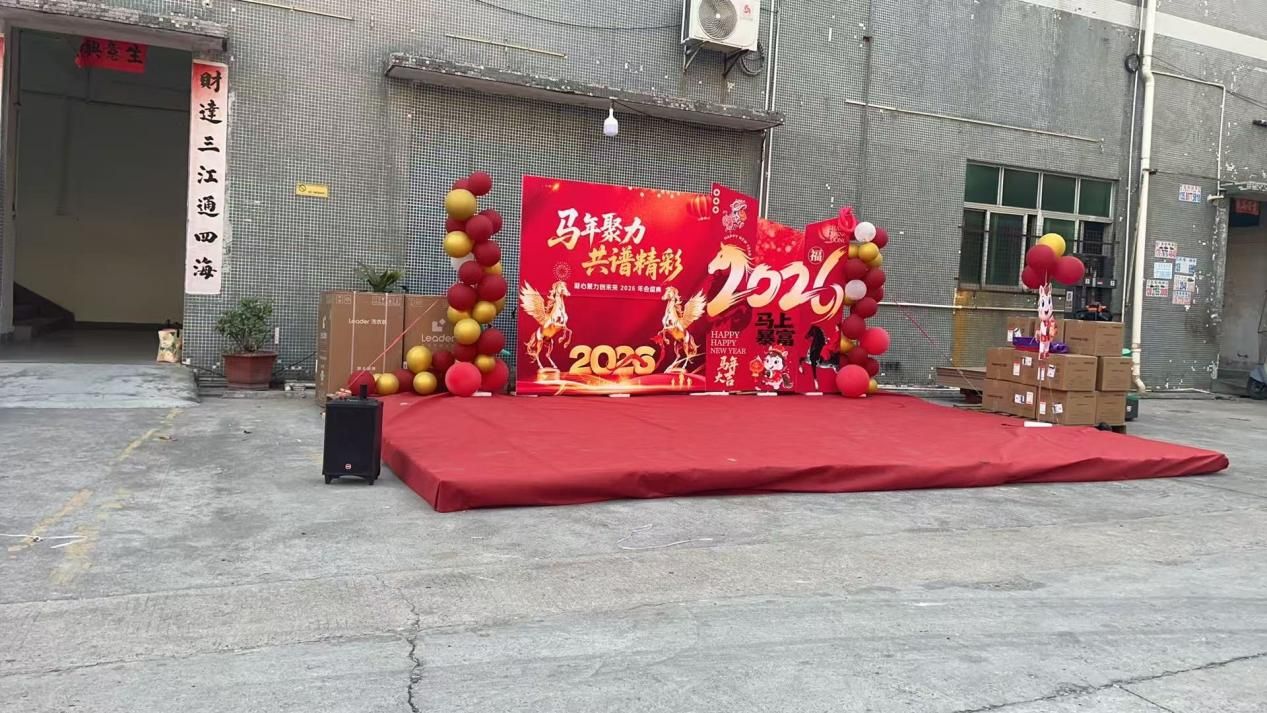 傍晚时分,公司小院被五彩灯笼、喜庆彩灯点缀得暖意融融,桌椅整齐排列,美食佳肴陆续上桌,处处洋溢着团圆祥和的氛围。员工们身着盛装,踏着晚风陆续到场,彼此问候寒暄、畅谈过往,熟悉的小院里满是家人般的温馨气息。伴随着欢快的背景音乐,尾牙宴正式拉开帷幕。
